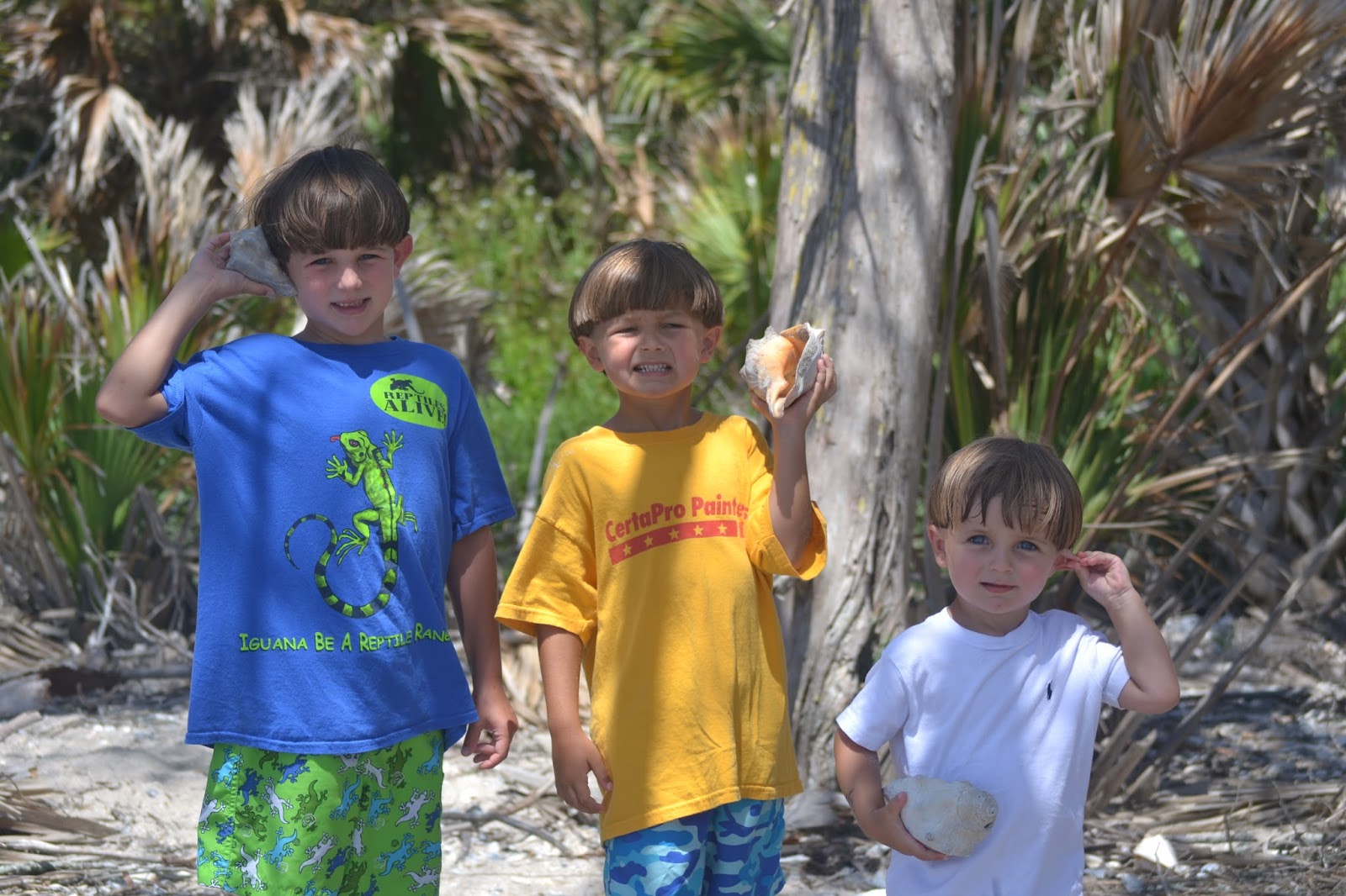 Playing with the conch shells.